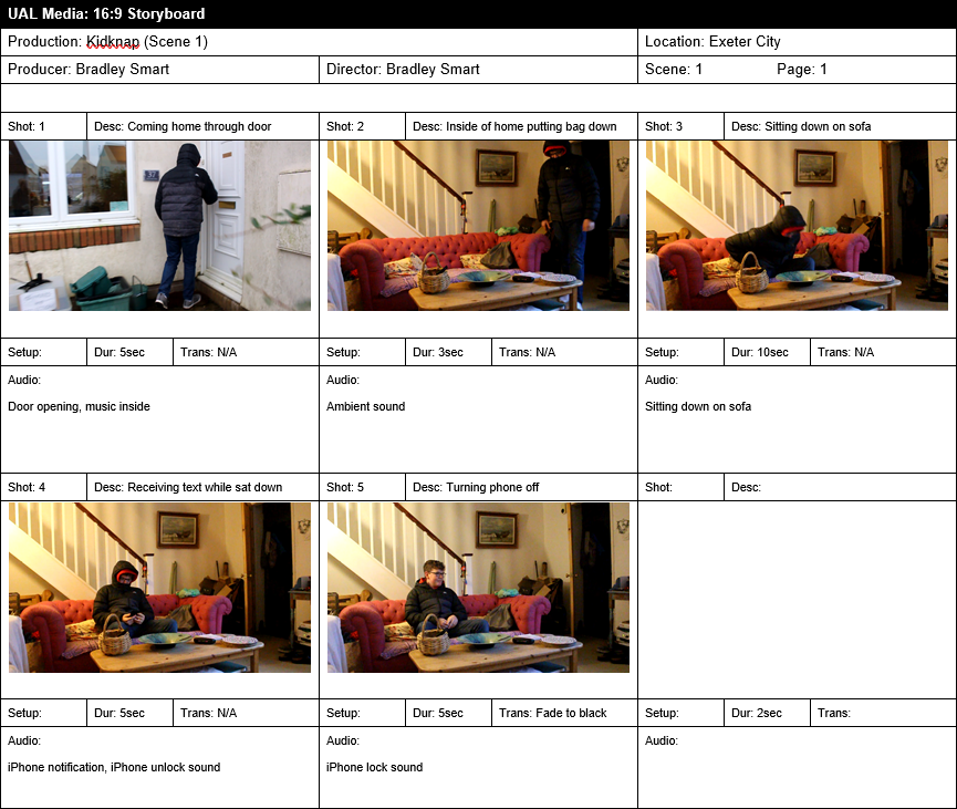 Synopsis: A male receives a text saying that he is being followed and that he is being tracked via his phone, the text also says he needs to meet someone at the top story of a car park, but he doesn’t receive any meaning or reasoning as to why he must. The darkly clothed men who are following originally the male are constantly tracking him on their phones. The next morning, he goes into Exeter high street and places his phone into a handbag of a busy female shopper, she is wearing a similar back coat to him, she goes inside the car park to return home while the two hunters are closing in on her when she pulls her hood down and looks behind herself when they stop and stand there in shock. Throughout the episode there will be many twists and turns, with the main character Harrison wanting to leave the gang he has gotten roped into, however they are holding his personal information which he attempts to regain himself, soon after the leader finds out about his wrongdoings.