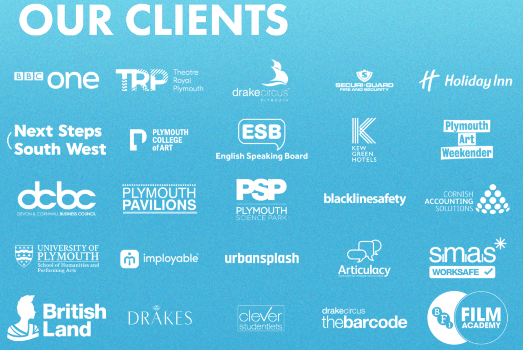 The three different media companies in the south west which websites I analysed all had different names. While all being successful, ‘Hello Charlie’ is a name which does not relate to a location or tell the reader anything about the company whatsoever, it seems pleasant because of the ‘Hello’ at the start of the name which is a good touch and thing to have. ‘South West Films’ fulfils all both of the things previously mentioned; it tells you the location where the company is based and the area that they cover and tells you what the business does, which is ‘films’. Finally, ‘Round One Films’ contains the product but not the location. This makes me consider weather containing the information in the name of the company is necessary and if it adds to the company, or if it could make the company seem cheaper, because the industry is overwhelmed with the amount of companies with the placement or location in the name.