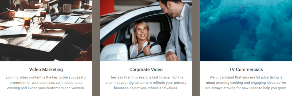 A page they have on their site is called ‘services’ which I have not seen on any of the other two, put simply this describes the different types of work they offer and a quick description below. This is good because it could help the client decide what style or type of video they might desire. This site is perfect because it includes both the pros from the last two without any negatives, it manages to remain brief while still retaining a great amount of detail. The website feels responsive with every page you go through, and still gives you all the information you came for.